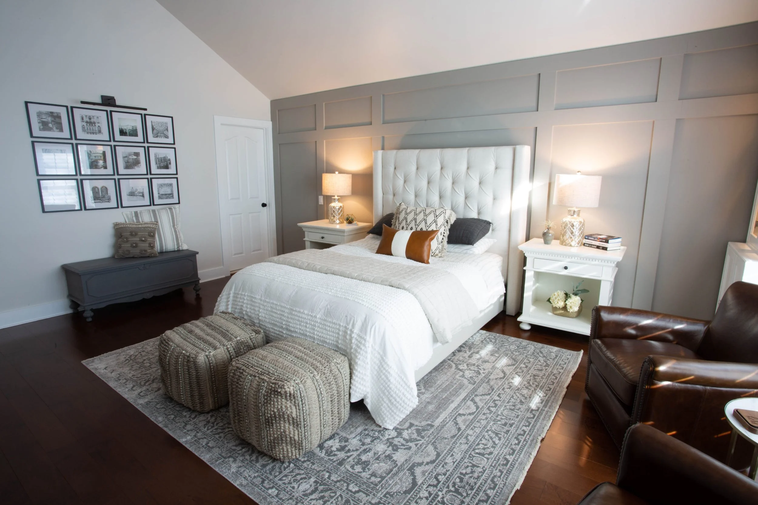 Betty Hill + Anita - Master Bedroom with custom reading nook, and new lighting, doors and paint throughout the home